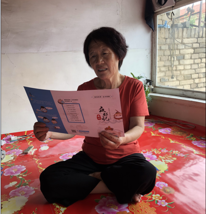 (村民在認(rèn)真閱讀宣傳折頁(yè)上的反邪教知識(shí))
