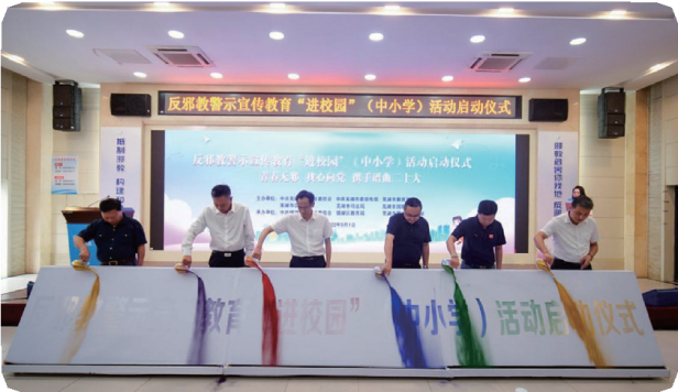 二是構(gòu)建豐富“教學(xué)品”。以“崇尚科學(xué)、反對(duì)邪教”為主題,合肥、宿州、淮南等地通過(guò)反邪教主題班會(huì)、集體宣誓、集中閱讀反邪教宣傳刊物、集體參觀(guān)警示教育基地、征集反邪教手抄報(bào)等方式,讓學(xué)生認(rèn)識(shí)邪教的本質(zhì)特征,掌握正確防范和抵制邪教的方法。各地還通過(guò)“小手牽大手”,積極鼓勵(lì)學(xué)生爭(zhēng)當(dāng)“反邪小衛(wèi)士”等方式,將反邪防邪知識(shí)帶入家庭、帶進(jìn)社區(qū),達(dá)到了“校內(nèi)開(kāi)花校外香”的效果。三是創(chuàng)建普法“新品牌”。為擴(kuò)大反邪教警示宣傳“進(jìn)校園”覆蓋面,深化“平安校園”創(chuàng)建,結(jié)合普法宣傳、全國(guó)科普日等,發(fā)揮各中小學(xué)法治副校長(zhǎng)和高校警務(wù)站、中小學(xué)警務(wù)聯(lián)席室作用,通過(guò)校園反邪教警示教育專(zhuān)題講座、剖析典型案例、現(xiàn)身說(shuō)法、以案釋法,不斷提升反邪教警示宣傳教育的針對(duì)性、實(shí)效性、專(zhuān)業(yè)性。▲黃山市祁門(mén)縣“開(kāi)學(xué)第一課”暨反邪教警示教育宣傳進(jìn)校園啟動(dòng)儀式現(xiàn)場(chǎng)