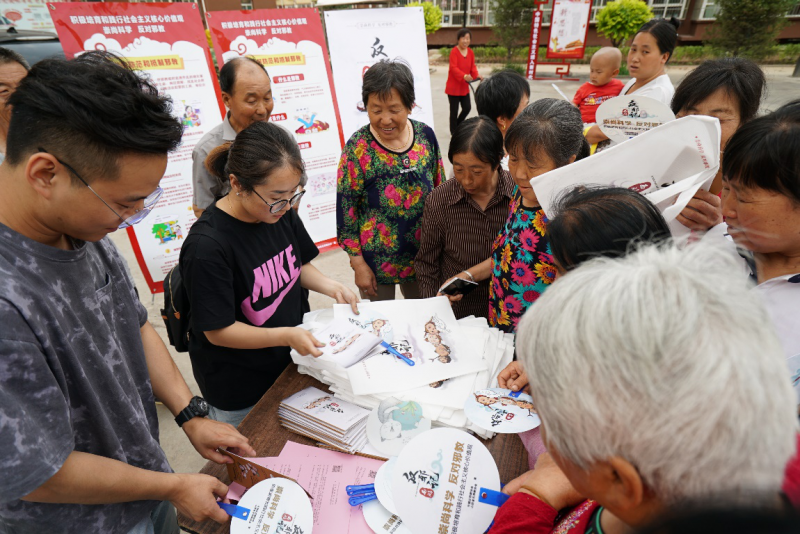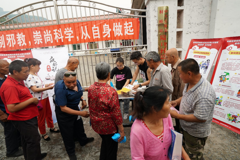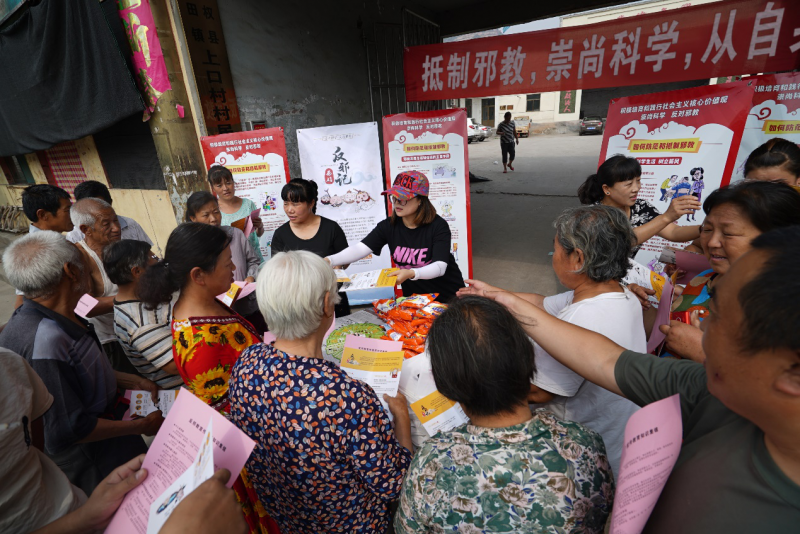 活動期間,工作人員主要通過懸掛橫幅,擺放展架,分發(fā)反邪教宣傳資料,贈送環(huán)保袋、洗衣粉、香皂盒小禮品等形式進(jìn)行了宣傳。在現(xiàn)場,工作人員擺放了有關(guān)“什么是邪教” “如何防范和抵制邪教”以及“邪教的主要手段”等內(nèi)容介紹的展板,并向村民們講解邪教的種類、本質(zhì)、特征和危害,邪教與宗教的區(qū)別,處理邪教的法律法規(guī)等等。據(jù)統(tǒng)計,在活動現(xiàn)場共分發(fā)宣傳頁、西游反邪宣傳折頁、以及小禮品約1500份。同時,我們還在“晉風(fēng)網(wǎng)”網(wǎng)站制作活動專題頁面;在“晉風(fēng)網(wǎng)”“西游幺幺零”等微信公眾號上開設(shè)“反邪活動”專欄,以及在“西游幺幺零”頭條號上,針對反邪宣傳月活動進(jìn)行重點(diǎn)宣傳,著力提升活動的傳播力。